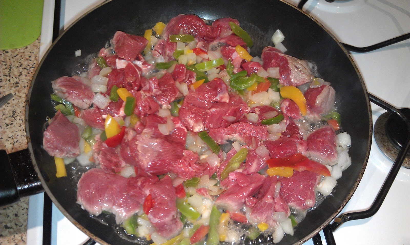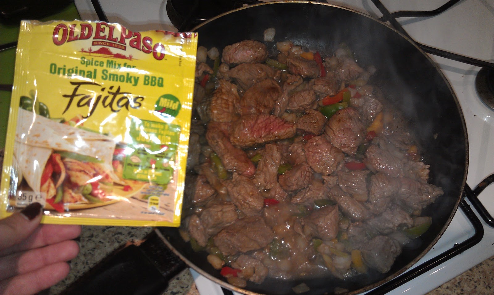 Cooking on a low heat, I added Old El Paso BBQ Fajita Mix. I let the beef cook as much as I wanted it to, then turned off the heat, covered with tin foil and let rest for 10 minutes.